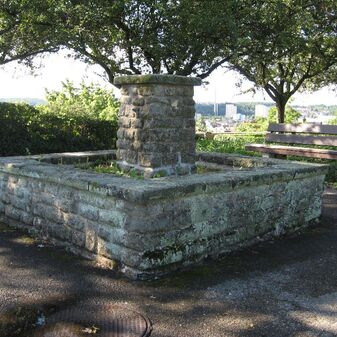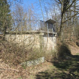 Quellfassung aus Steinblöcken und einer überdachten Rinne; Wasser fließt in den Furtbach und zusammen mit dem Murkenbach in den Oberen See im Stadtgarten. Befriedigend erhalten