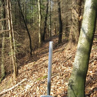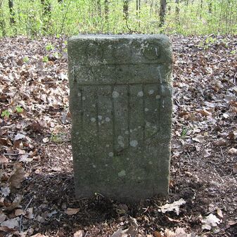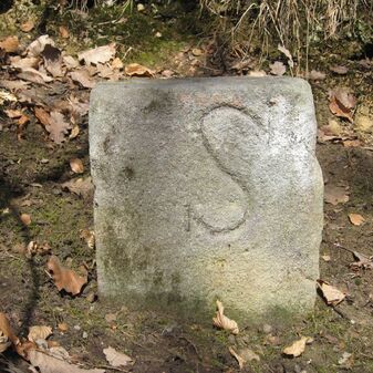 Gemarkungsgrenzstein auf aktuellem Grenzverlauf Böblingen / Holzgerlingen / Schönaich (zugleich Gemeindegrenze Böblingen / Schönaich und Holzgerlingen); Dreimärker; Sandstein, rechteckige Grundform, flacher Kopf; befriedigend erhalten, 51cm hoch, 22cm breit, 31cm tief. Kennzeichnung auf dem Kopf mit T-förmiger Krinne und an den Seiten Symbol Wappen von Böblingen, Buchstaben S (für Schönaich), H (für Holzgerlingen) und Nummerierung (124; 232).