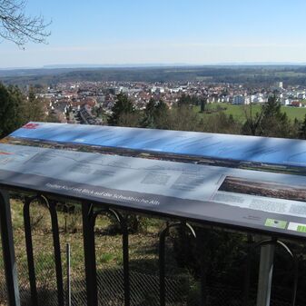 Panoramatafel an der Aussichtsplattform am Rauhen Kapf mit Blick auf den Schönbuch bis hin zur Schwäbischen Alb, errichtet 1911 vom Verschönerungsverein Böblingen; aus Stein, gut erhalten, mit Inschrift; Tafel erneuert.