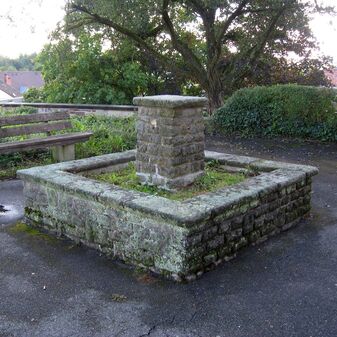 Laufbrunnen bestehend aus einem aus Steinquadern gemauerten quadratischen Trog, in dessen Mitte sich ein gemauerter Brunnenstock mit vier Aufgussrohren erhebt. Befriedigend erhalten, ist laut Erfasser still gelegt, 120cm hoch, 190cm tief und breit.