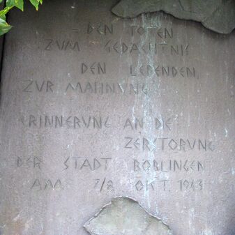 - DEN TOTEN / ZUM GEDÄCHTNIS / DEN LEBENDEN / ZUR MAHNUNG – ERINNERUNG AN DIE / ZERSTÖRUNG / DER STADT BÖBLINGEN / AM 7./8. OKT. 1943