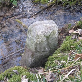 Gemarkungsgrenzstein von 1924 auf aktuellem Grenzverlauf Böblingen / Sindelfingen / Musberg (zugleich Gemeindegrenze Böblingen / Sindelfingen und Gemeindegrenze Böblingen / Leinfelden-Echterdingen sowie Landkreisgrenze Böblingen / Esslingen); Dreimärker; Sandstein, rechteckige Grundform, flacher Kopf; gut erhalten. Kennzeichnung auf dem Kopf mit Pfeil und den an den Seiten Symbol Wappen von Böblingen, Kreuz (für Sindelfingen), Holzpatsche/ Ziegelmodel (für Musberg) und Nummerierung (58; 88; 1924; 227). Der Pfeil weiß auf die eigentliche Grenze in der Bachmitte hin, auf der anderen Uferseite steht ein Pedant-Stein.
