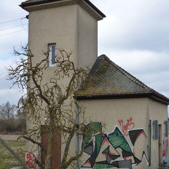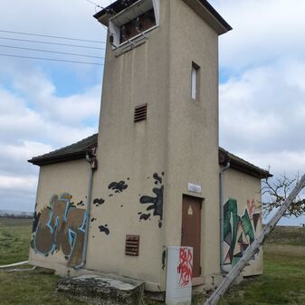 Pumpstation zur einstigen Trinkwasserversorgung der Gemeinden Nufringen und Rohrau (heute Teilort der Gemeinde Gärtringen) aus der Quelle im Ried; verputzt und bestehend aus Stein. Kleines Gebäude mit etwas höherem Turm mit Walmdach, Tür und kleinen Fenstern. Befriedigend erhalten, ca. 10m hoch, 5m breit.