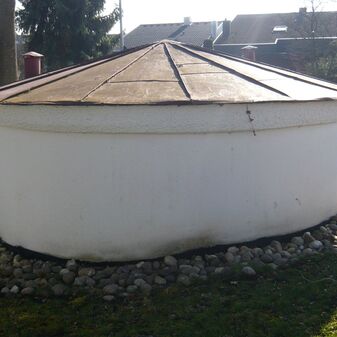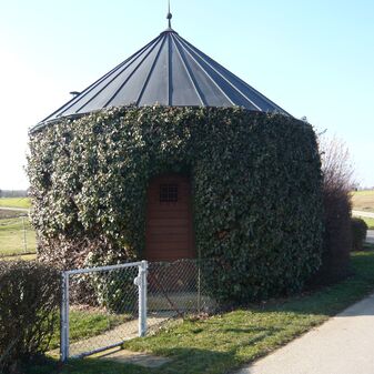 Behelfshaus für die ehem. Toilette am 1914 erbauten Schulhaus; bestehend aus einem Erdgeschoss aus Sandsteinquadern, vier Säulen und einem Dachgeschoss mit Walmdach. Die ehem. Innenausstattung ist nicht mehr erhalten. Befriedigend erhalten, 4m hoch, 7m breit und 5m tief.