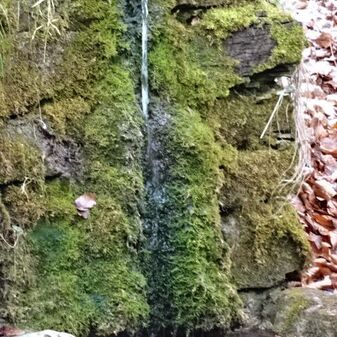Pumpbrunnen mit steinernem Brunnentrog aus Sandstein und einem Brunnenstoß mit Pumphebel aus Gusseisen; errichtet im 19. Jahrhundert und ehemals genutzt als Viehtränke. Gut erhalten, 60cm hoch, 40cm breit, 1,50m tief, funktionsfähig.