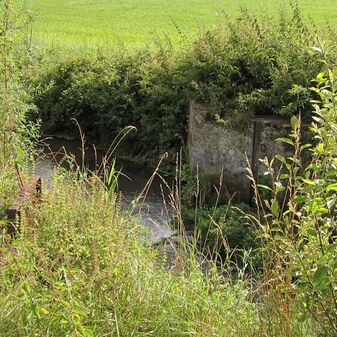 Wassergraben bei der Irm zur Bewässerung der Wiesen; z. T. mit Brücken überspannt.