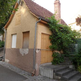 Ehem. Wasch- und Backhaus, vermutlich aus dem 18. Jahrhundert. Erdgeschoss mit Satteldach, gemauerter Fassade mit Fachwerkgiebel, Tür, halbrunden Fenster, großem Schornstein. Befriedigend erhalten, 6,6m hoch, 6,2m breit, 4,5mtief.