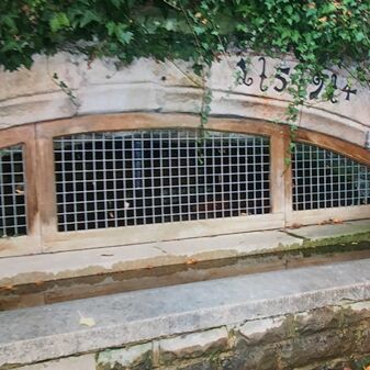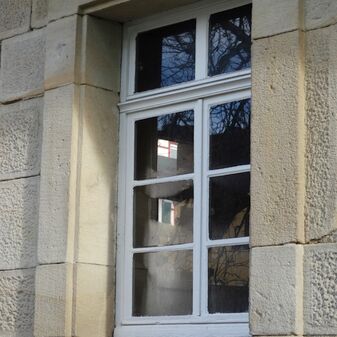Eckkonsole aus Sandstein aus dem 16. Jh. von einem Gebäude, das 1943 bei den Luftangriffen zerstört wurde (nahe Kirchplatz 11, an der Hofeinfahrt); im Vorgarten aufbewahrt, befriedigend erhalten, 75cm hoch, 70cm breit, 55cm tief. Literatur vorhanden.