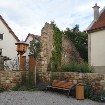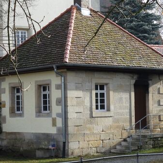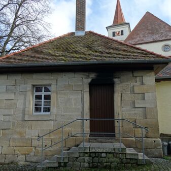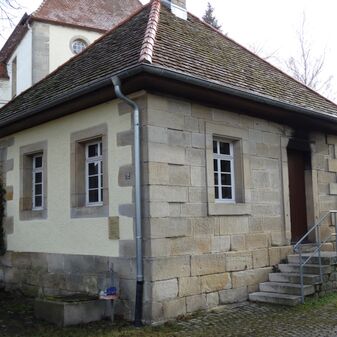 Backhaus der Gemeinde von 1853 mit zwei Backöfen, angebauter Obstdarre für Dörrobst; wird noch genutzt und ist gut erhalten. Quadratischer Grundriss mit rechteckigem Anbau, Fassade aus Sandsteinquadern und z.T. verputzt, mit Sockel, zweiläufige Treppe vor der Eingangstür, Fenster mit Steinlaibung, Ziegeldach, Zeltdach mit hohem gemauertem Kamin.