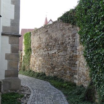 Grenzstein, vor 1680, verweist auf einen Zehntbezirk des Klosters Bebenhausen, zu dem Altdorf gehörte; 2004 hierher versetzt; Sandstein, rechteckige Grundform, gewölbter Kopf; gut erhalten, steht gerade; 50cm hoch, 27cm breit, 17cm tief. Kennzeichnung auf der Seite mit dem Symbol des Abtsstabs für das Kloster Bebenhausen.