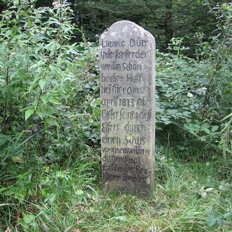 LUDWIG DÜRR / unterförster der / weil im Schön - / bucher Huth / fiel hier am 28. / april 1813 als / Opfer seines dienst / Eifers durch / einen Schus / von einem wilderer / dis Denckmal / sezt ihm der Rev- / förster Bechtner
