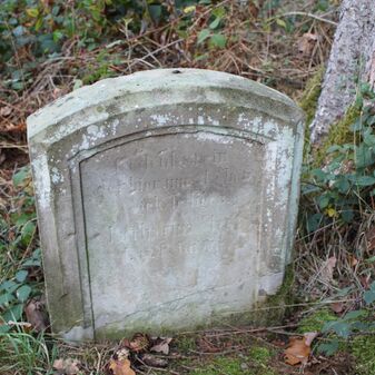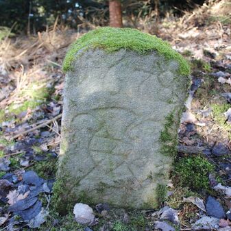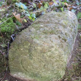 Gedenkstein von 1912 für Anna Katharina Mast, Waldarbeiterin, die hier bei Waldarbeiten am 13. März 1912 von einer Tanne erschlagen wurde. Sie war ledig und ist am 7. September 1850 geboren. Gewölbte Steinplatte mit Zierleisten und Inschrift, Sandstein, 50cm hoch, 55cm breit, 15cm tief, beschädigt durch Verwitterung, Inschrift schwer lesbar. Steht auf einem keltischen Grabhügel.