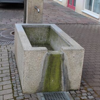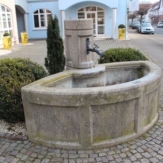 „Badbrunnen“, moderner Laufbrunnen von ca. 1992, gut erhalten. Schlichter längsrechteckiger Brunnentrog mit Ausfluss an der Schmalseite, gegenüber schlichter etwas höherer Pfeiler ebenfalls auch Stein, daran gebogenes Metallrohr als Ausfluss. In der Nähe abgedeckter Brunnenschacht. Bei dem urspr. „Badbrunnen“ handelte es sich um eine in Stein gefasste Quelle, die Trinkwasser lieferte, das sich zum Baden im nahegelegenen, aber abgegangenen Badehaus eignete. Neugestaltung im Zuge der Ortskernsanierung.