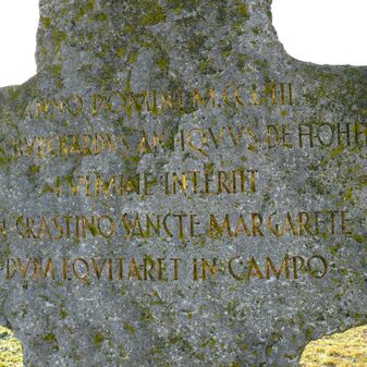 ANNO DOMINI MCCLIII / COMES BVRCKARDVS ANTIQVVS DE HOHENBERG / FULMINE INTERIIT / IN CRASTINO SANCTE MARGARETE / DVM EQVITARET IN CAMPO
