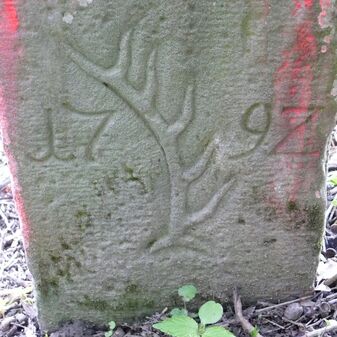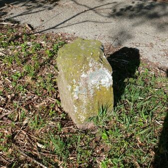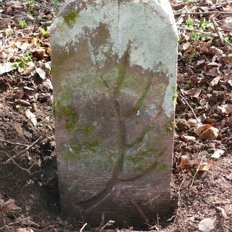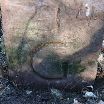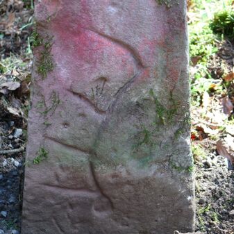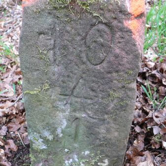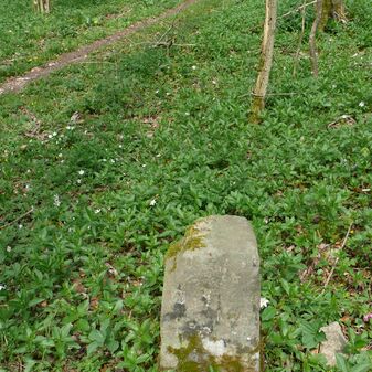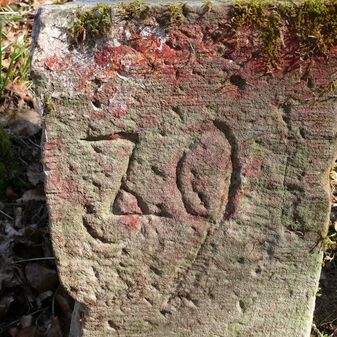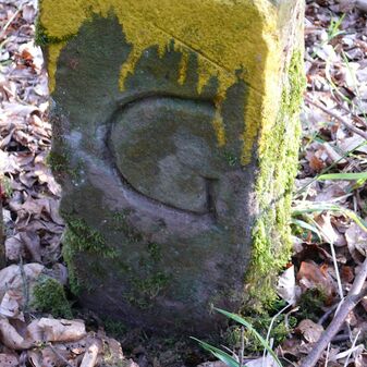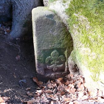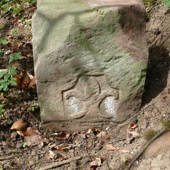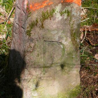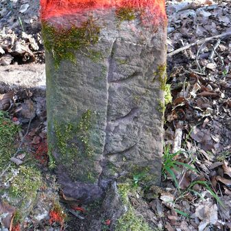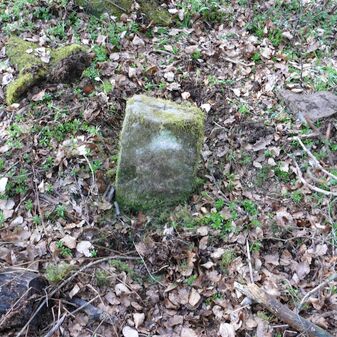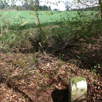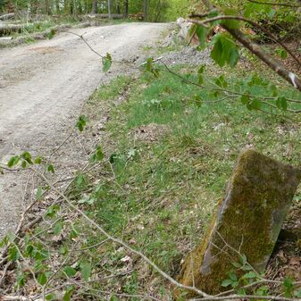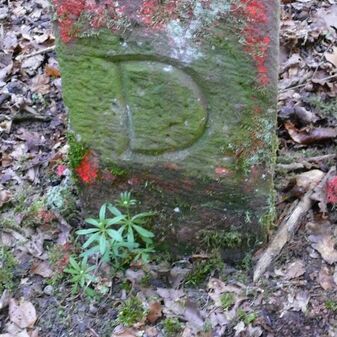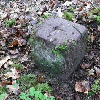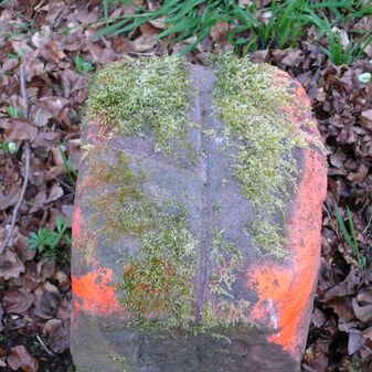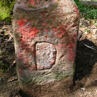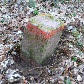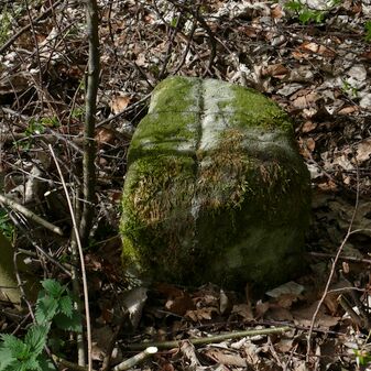 Wohl Dreimärker, Gemarkungsgrenzstein auf aktuellem Grenzverlauf Deckenpfronn / Gültlingen (zugleich Gemeindegrenze Deckenpfronn / Wildberg; zugleich Landkreisgrenze Böblingen / Calw); Sandstein mit rechteckiger Grundform, flacher Kopf, gerade stehend, 22cm hoch, 20cm breit, 18cm tief, beschädigt. Kennzeichnung des Kopfes mit T-förmiger Krinne.