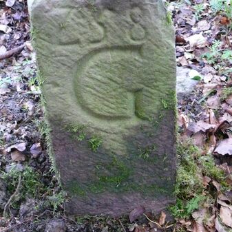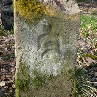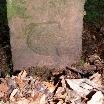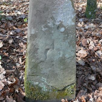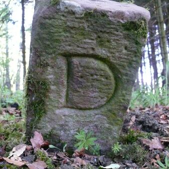 Dreimärker, Gemarkungsgrenzstein auf aktuellem Grenzverlauf Deckenpfronn / Dachtel / Gültlingen (zugleich Gemeindegrenze Deckenpfronn / Aidlingen / Wildberg; zugleich Landkreisgrenze Böblingen / Calw); Sandstein mit rechteckiger Grundform, gewölbter Kopf, gerade stehend, 45cm hoch, 25cm breit, 20cm tief, beschädigt. Kennzeichnung des Kopfes mit T-förmiger Krinne und der Seiten mit Buchstaben (A), Nummerierung (10; 1) und Symbole (Geweih).
