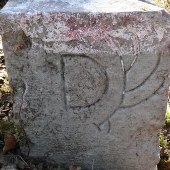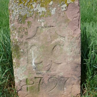 Gemarkungsgrenzstein auf aktuellem Grenzverlauf Deckenpfronn / Dachtel (zugleich Gemeindegrenze Deckenpfronn / Aidlingen); von 1760, Sandstein mit rechteckiger Grundform, gewölbter Kopf, gerade stehend, 37cm hoch, 24cm breit, 15cm tief, beschädigt. Kennzeichnung der Seiten mit Jahreszahl (1760), Buchstaben (D; D) und Symbol Abtsstab.