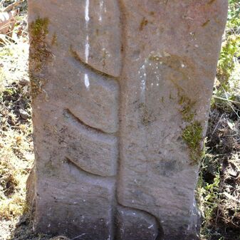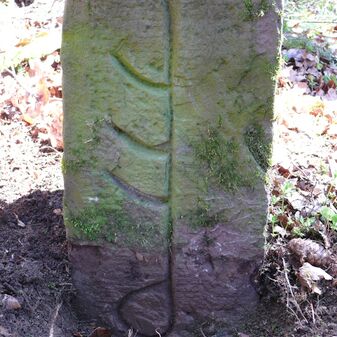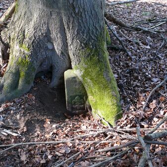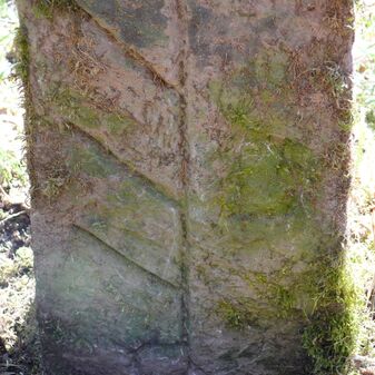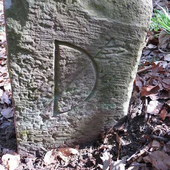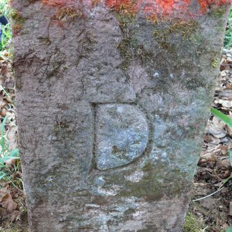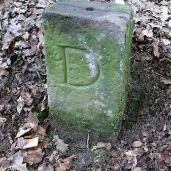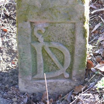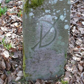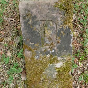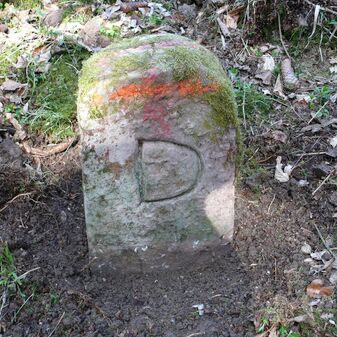 Dreimärker, Gemarkungsgrenzstein auf aktuellem Grenzverlauf Deckenpfronn / Dachtel (zugleich Gemeindegrenze Deckenpfronn / Aidlingen); Sandstein mit rechteckiger Grundform, gewölbter Kopf, gerade stehend, 60cm hoch, 28cm breit, 21cm tief, beschädigt. Kennzeichnung des Kopfes mit T-förmiger Krinne und der Seiten mit Buchstaben (D), Nummerierung (2) und Symbole (Abtsstab, Geweih).