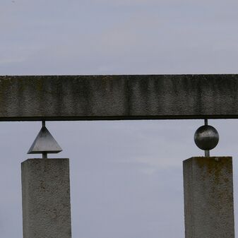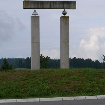 Gedenkstein „Moment der Freiheit“ von 1991 anlässlich der deutschen Wiedervereinigung, Entwurf von Thomas Dittus, Bildhauer aus Herrenberg. Zwei Sandsteinstelen mit schmalem geschwungenem Spalt dazwischen, 2,20m hoch, 75cm breit, 25cm tief, gut erhalten. Metallplatte mit Inschrift.