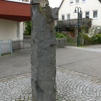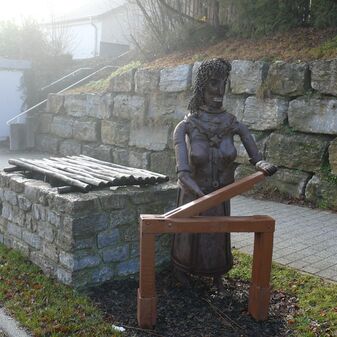 Laufbrunnen mit Brunnenfigur, von 1976 aus rötlichem Stein auf dem Marktplatz; anlässlich der 900-Jahrfeier errichtet. Künstler: Albert Volz, Bildhauer aus Neubulach-Altbulach; Kreisrundes Brunnenbecken aus Stein auf einer kreisrunden Stufe. In der Mitte erhebt sich ein Brunnenstock aus Stein, auf dem eine Steinfigur steht: ältere Frau mit Kopftuch, ihre Hände auf den Schultern eines Kindes liegend. Laut Erfasser symbolisiert dies das Alter, das die Erfahrung an die nächste Generation weitergibt; vier Wasserausgüsse aus Metall, Durchmesser 3,5m, Höhe 2,8 m; befriedigend erhalten.