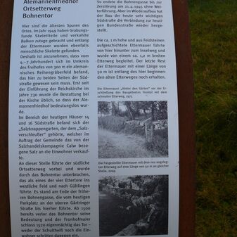 DAS UNTERE TOR / BEGRENZTE HIER ALS TEIL DER ETTERMAUER BIS INS / 18. JAHRHUNDERT DAS DORF IN RICHTUNG GÄRTRINGEN / ZUR ERINNERUNG ERRICHTET 2013 // DAS UNTERE TOR / WAR HIER BIS INS 18. JAHRHUNDERT DER ORTSEINGANG AUS RICHTUNG GÄRTRINGEN UND GEHÖRTE ALS EINES / DER 4 TORE ZUR ETTERMAUER DES DORFES