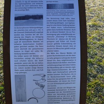 Stele einer keltischen Figur mit typischem Kopfschmuck und verschränkten Armen, 2012 nahe des eingeebneten keltischen Grabhügels „Hohwiel“ errichtet, anlässlich der Keltenausstellung im Jahr 2012. 1,70m hoch, 40cm breit und tief, aus Buntsandstein mit Metallapplikation als Gürtelblech, gut erhalten. Das Gesicht der Figur ist detaillierter ausgearbeitet, der Körper nur angedeutet. Die Stele wurde entworfen von Thomas Dittus, Steinbildhauer aus Herrenberg, in Zusammenarbeit mit Deckenpfronner Bürgern. Die Stele steht auf einem Buntsandsteinpodest und ein erläuternder Text ist auf einer Metalltafel in der Nähe angebracht.
