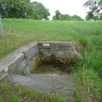 „Kronenbrunnen“; von der Gemeinde 1865 errichtete, 2,75mhohe Brunnenstube aus Sandsteinquadern mit Sandsteindachplatten, Betonsockel und Metalltür. Vorgelagerter Wasserbehälter mit Metallabdeckung und -geländer. Ursprünglich Wasserleitung zum Dorfbrunnen; nach dem Ausbau der Gemeinde-Wasserversorgung nur noch Nutzung für Landwirtschaft; gut erhalten.