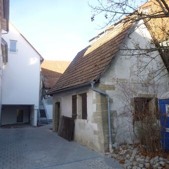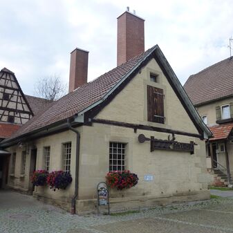 Waschhaus von 1826 mit Eckquadern und -laibungen aus Sandstein, 2,60m hoch, Putzfassade, steiles Satteldach. Tür, Fensterläden und rückwärtige Treppe ins Dachgeschoss aus Holz. Türsturz: Segmentbogen mit Inschrift. Das Gebäude gehörte ursprünglich zu einer Hofanlage, die 2014/15 durch einen Neubau ersetzt worden ist.