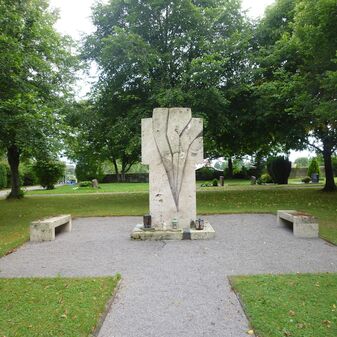 Gefallenendenkmal für die Gefallenen, Vermissten und an Kriegsfolgen Verstorbenen des Zweiten Weltkriegs. 3,50mhohe, schlichte, freistehende Stele aus Naturstein von 1957 mit Inschrift sowie 13 rechteckige Steintafeln mit den Namen der Gefallenen und Vermissten an der Schlossgartenmauer. Vorplatz mit Sitzgelegenheit, 2015 renoviert; sehr gut erhalten.