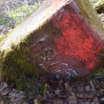 Gemarkungsgrenzstein auf aktuellem Grenzverlauf Gärtringen / Oberjesingen / Deckenpfronn (zugleich Gemeindegrenze Gärtringen / Herrenberg / Deckenpfronn), Dreimärker; roter Sandstein, 41cm hoch, 23cm breit, 27cm tief, rechteckige Grundform, gerade stehend, flacher Kopf mit dreiteiliger, y-förmiger Krinne, zwei Seitenecken beschädigt. Kennzeichnung an den Seiten mit dem Symbol der Oberjesinger Lilie und Buchstabe D (für Deckenpfronn) mit schräg durchlaufendem Strich, der den Abtsstab des Deckenpfronner Wappens symbolisiert