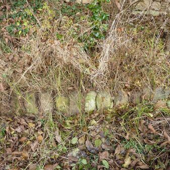 Im Zuge der Flurbereinigung wurden einige ehemalige Grenzsteine von ihren ursprünglichen Standorten entfernt, gesammelt und hier zusammengetragen.
