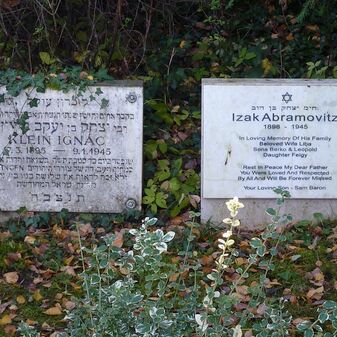 DEN OPFERN DES 3. REICHES / ZUM GEDENKEN, / DEN LEBENDEN / ZUR MAHNUNG! // DENN DER HERR KENNT DEN WEG / DER GERECHTEN, / DOCH DER WEG DER SÜNDER / FÜHRT IN DEN ABGRUND. / PSALM 1,6 // KLEIN IGNAC… // Izak Abramovitz…
