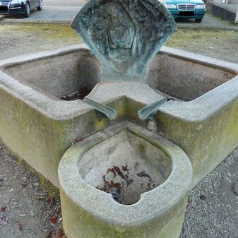 Im Zuge der Erneuerung und Erhöhung der Nebringer Straße wurde 1986 der heutige Brunnen aus Sand- und Gussstein errichtet. Sein Wasser erhält er aus dem Rossweg-Brunnen, der sich weiter oben an der Straße befindet. Bereits 1930 wurde an der mitttlerweile entfernten Friedenslinde schon einmal ein Brunnen an Stelle dreier Holztröge errichtet, als die Straße nach Nebringen gebaut wurde.