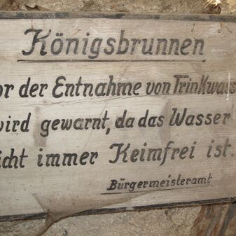 Königsbrunnen / Vor der Entnahme von Trinkwasser / wird gewarnt, da das Wasser / nicht immer Keimfrei ist. / Bürgermeisteramt