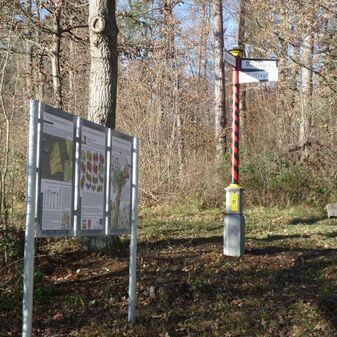 Der Wegweiser aus Gusseisen stammt von 1875 und weist den Weg zu den vier Ortschaften Darmsheim, Lehenweiler, Dätzingen und Döffingen. 2013 wurde er restauriert und ist gut erhalten. Der ursprüngliche Standort des 2,70mhohen Wegweisers ist allerdings nicht sicher.