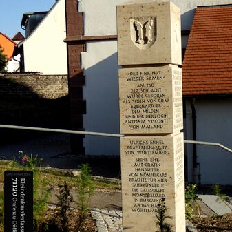 Dieser Gedenkstein von 1888 erinnert an Graf Ulrich von Württemberg, der in der Schlacht bei Döffingen 1388 starb. Angefertigt wurde der Gedenkstein aus quadratischem Sandstein von Bildhauer Christian Schlauch aus Münklingen. Der Stein ist sowohl mit einer Inschrift als auch mit dem Wappen Württembergs versehen und ist 175cm hoch und 74cm breit wie tief. Die Renovierungsarbeiten wurden im Jahr 2005 von der Firma Wanner aus Grafenau geleistet.