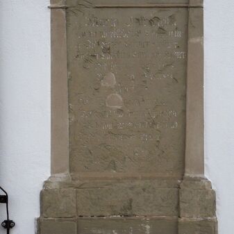Dieser Epitaph von 1819 befindet sich an der Nordfassade der Martinskirche. Die Einfassung ist mit einer Inschrift versehen, von der jedoch durch Verwitterung nur ein Bruchteil lesbar ist. Er ist 150cm hoch und 92cm breit.