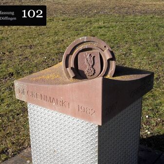 Der Gemarkungsgrenzstein steht auf dem Grenzverlauf zwischen Döffingen und Darmsheim. Der rechteckige Sandstein mit gewölbtem Kopf und abgeknickter Krinne ist an den Seiten mit dem Buchstaben D gekennzeichnet. Er ist 45cm hoch, 33cm breit, 22cm tief und weist Schäden auf.