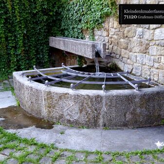 Der "Pfarrbrunnen" oder auch "Seuffer-Brunnen" stammt von 1839 und wurde 1987 saniert. Es handelt sich hierbei um ein kreisrundes aus Granitsteinen gemauertes Becken, dahinter eine hochgemauerte gewölbte Wand. Außerdem stehen eine Bank und Inschrifttafel daneben. Der sehr gut erhaltene Laufbrunnen hat einen Durchmesser von 2,5mund eine Höhe von 77cm. Der ursprüngliche Brunnen soll von Steinmetz Michael Fischer geschaffen worden sein.