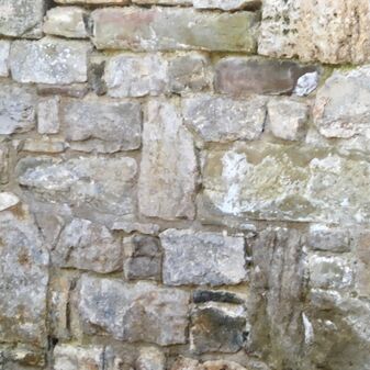 Mauer um den Kirchhof der Stephanuskirche, bestehend aus vermauerten Natursteinblöcken mit Inschriftsteinen. Ca. 190mlang. Kaum lesbar, aber gut erhalten.