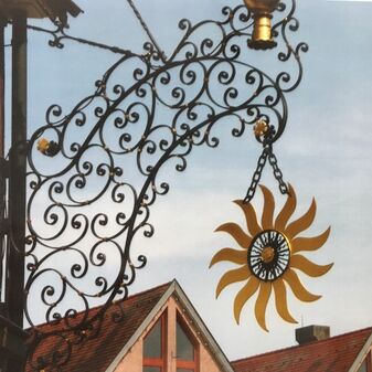 Schmiedeeiserner Ausleger, hergestellt ca. 1970 - 1975. Sehr gut erhalten.