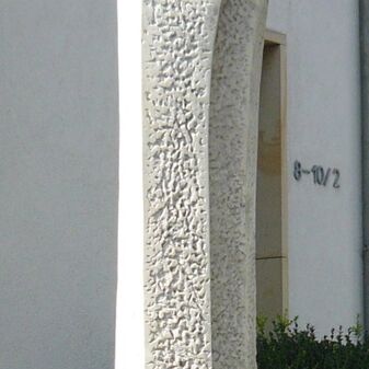 Freiplastik „Partnerschaft“, gefertigt 1990 von Thomas Dittus, Bildhauer aus Affstätt. Stele aus Carrara-Marmor in Form zweier Figuren. Sehr gut erhalten.
