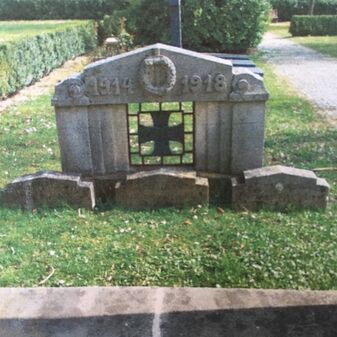 In dankbar treuem Gedenken an unsere Toten im Weltkrieg // Und wer den Tod im heiligen Kampfe fand / ruht auch in fremder Erde im Vaterland (1914-1918) // 1914 / 1918