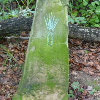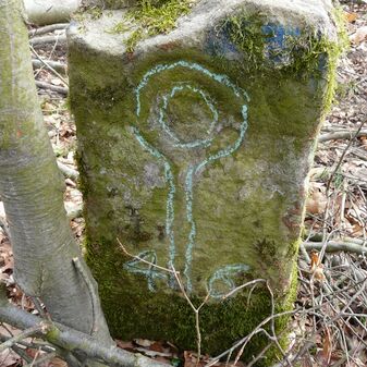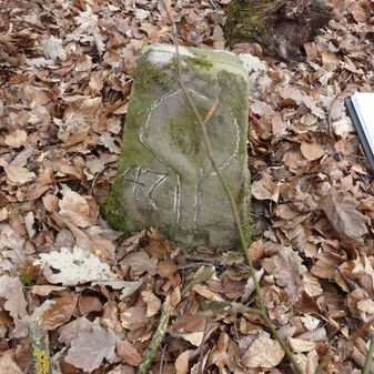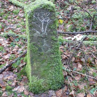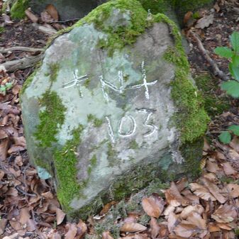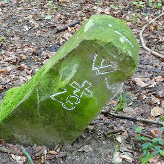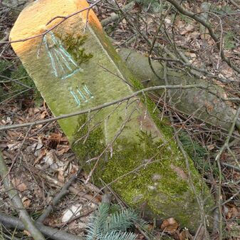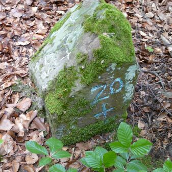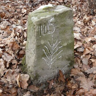 Gemarkungsgrenzstein auf aktuellem Grenzverlauf Rutesheim / Leonberg; zugleich Gemeindegrenze Rutesheim / Leonberg; Sandstein, rechteckige Grundform, flacher Kopf; mangelhaft erhalten; 130cm hoch, 35cm breit und 30cm tief.