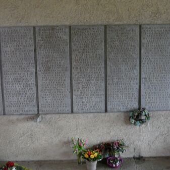 Das Denkmal ist den Gefallenen und Vermissten des Zweiten Weltkriegs gewidmet. Es handelt sich um sieben rechteckige Steinplatten an der Fassade der alten Leichenhalle mit Inschriften. Es wurde um 1947 gefertigt, ist sehr gut erhalten, 70cm hoch und 6m breit.