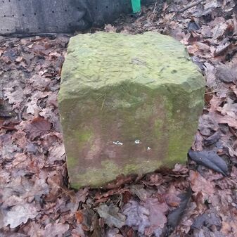 Gemarkungsgrenzstein auf aktuellem Grenzverlauf Rutesheim / Leonberg; zugleich Gemeindegrenze Rutesheim / Leonberg; Sandstein, rechteckige Grundform, flacher Kopf; befriedigend erhalten; 19cm hoch, 25cm breit und 19cm tief.