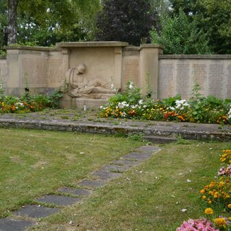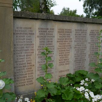 Gefallenendenkmal für die Gefallenen und Vermissten der beiden Weltkriege, gefertigt 1920 von Bildhauer Prof. Daniel Stocker aus Stuttgart sowie 1956 von Architekt Walter Steinle aus Stuttgart und Bildhauermeister Willy Zimmermann aus Dettenhausen. Besteht aus einem Relief eines sterbenden Soldaten mit Jesus, Frau und Kind im Hintergrund und mehreren Steinplatten mit den Namen und Daten der Gefallenen und Vermissten. Auf der Rückseite befindet sich ein stillgelegter Brunnen. Befriedigend erhalten, Maulbronner Sandstein, 2,30m hoch, 14m breit und 2,20mtief.
