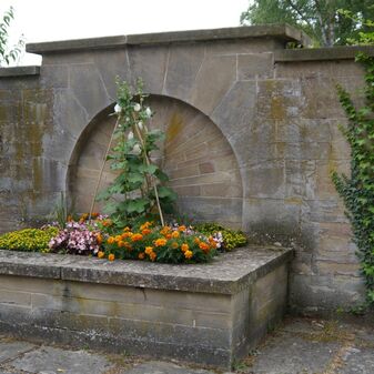 Laufbrunnen „Siechenbrunnen“, etwa 1742 errichtet und 1935 neu angelegt. Er besteht aus zwei übereinander liegenden gemauerten Becken und einem Metallrohr als Ausguss. Befriedigend erhalten, Sandsteinquader, ca. 4m breit. Zwei Öffnungen mit Metalltüren.
