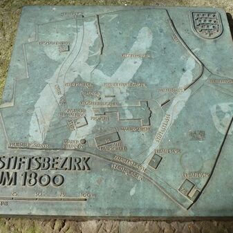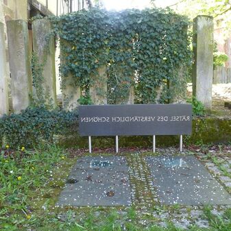 Grabstein „Poetische Orte“ im ehemaligen Kreuzgang hinter der Martinskirche; mit spiegelverkehrter Inschrift. Auf Initiative des Arbeitskreises „Kultur am Stift“ 2015 entstanden. Sehr gut erhalten.