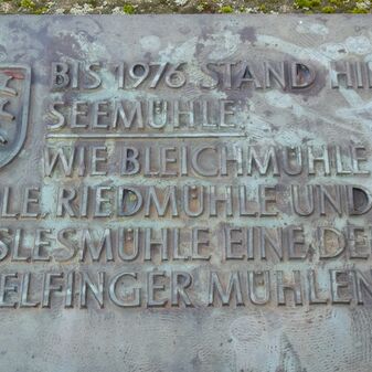 Der Mahlstein erinnert an die ehemalige Seemühle, die hier bis 1976 stand.